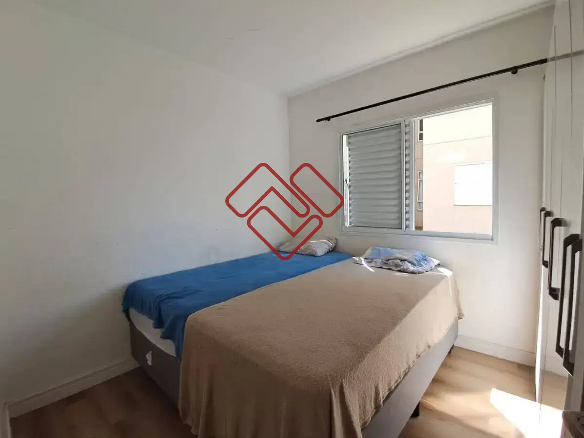 Apartamento térreo com dois quartos, banheiro, cozinha e sala integrados, possui uma vaga de garagem.